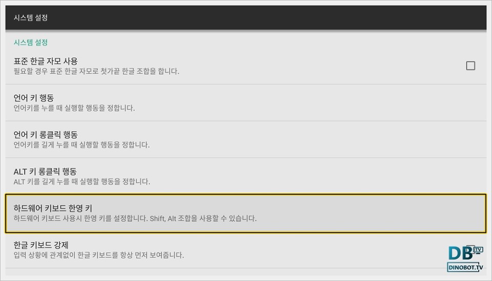 · 다이노봇 ATV7 사용자 매뉴얼 24부:한글 키보드 변경하기