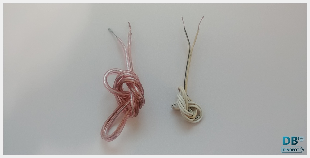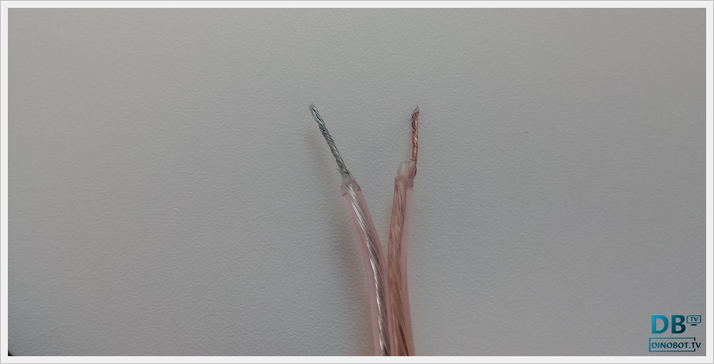 사진처럼 두 가닥이 붙어 있는데 양쪽 끝부분을 살짝 갈라서 끝부분을 살짝 벗겨 낸 후에 꼬아서 인티앰프와 스피커에 각각 연결 해주면 되는데 이때 주의 하실 부분이 케이블이 좌우가 있습니다.