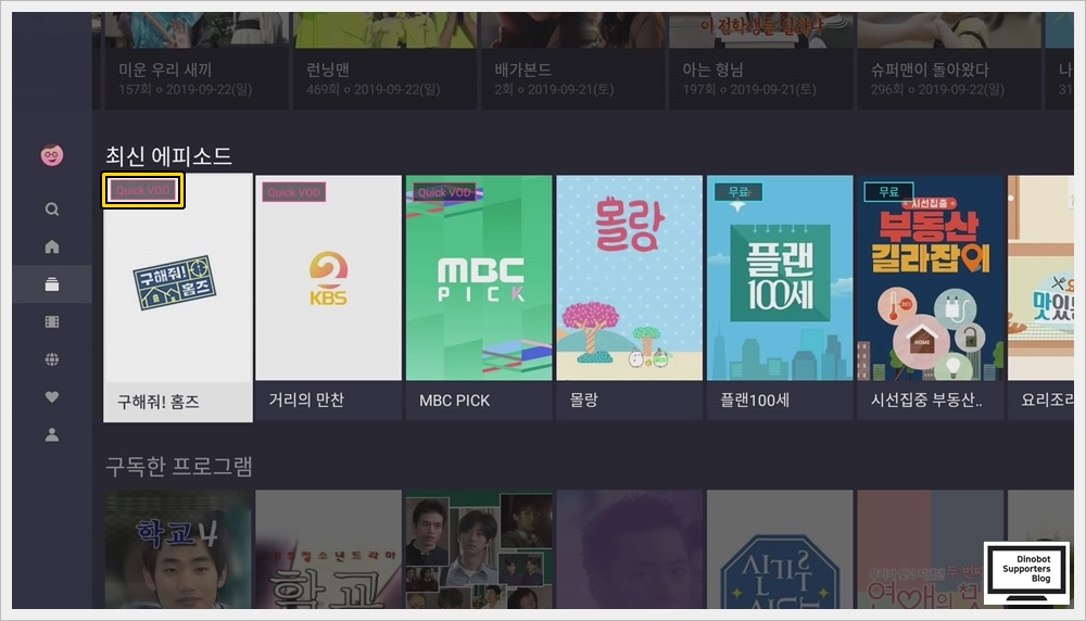 방송 목록에서 Quick VOD 아이콘이 있는 방송들은 본방 직후 5분 뒤에 바로 올라오는 VOD 서비스입니다.