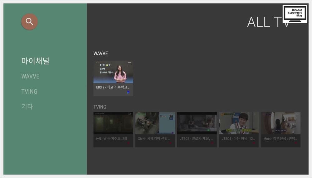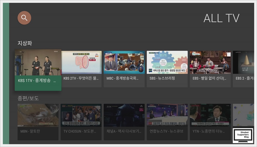 안드로이드 TV용 앱의 기본 형태를 띠고 있어서 리모컨으로 조작하기 편리 한 앱입니다.