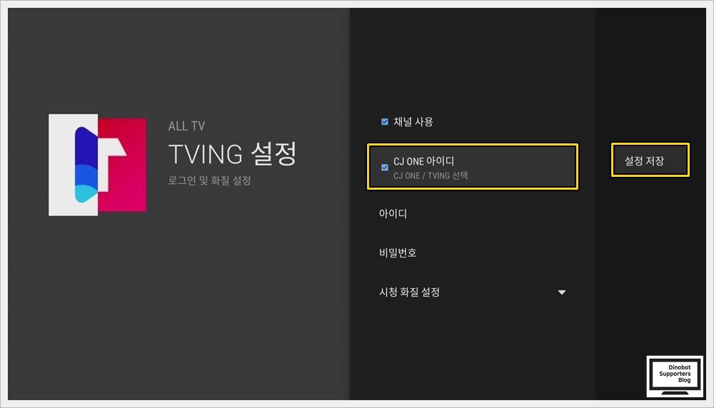 티빙은 CJ ONE 아이디와 티빙 아이디 두 가지 로그인 방식이 있기 때문에 사용하는 로그인 방식에 따라서 설정을 해주셔야 합니다.