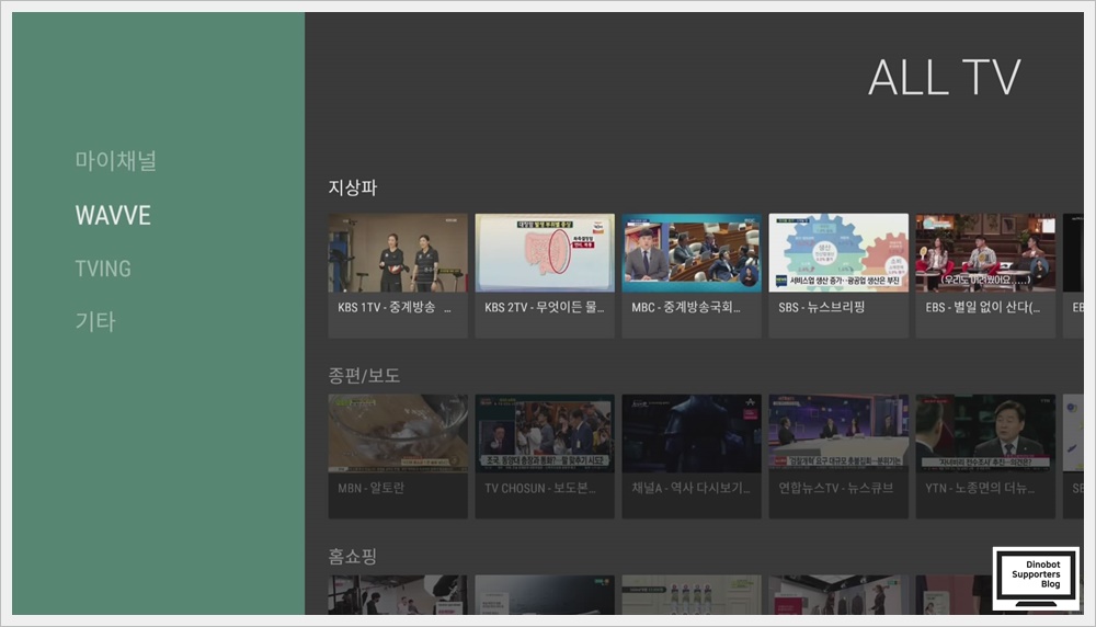 라이브 TV를 시청하려면 모바일 웨이브 / 티빙 모바일 앱을 설치하거나 KODI 애드온으로 시청을 해야 합니다.