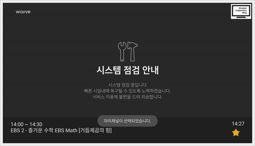 ' 마이채널이 선택되었습니다. ' 라는 메시지가 뜨며 마이 채널 리스트에 선택한 채널이 저장됩니다.