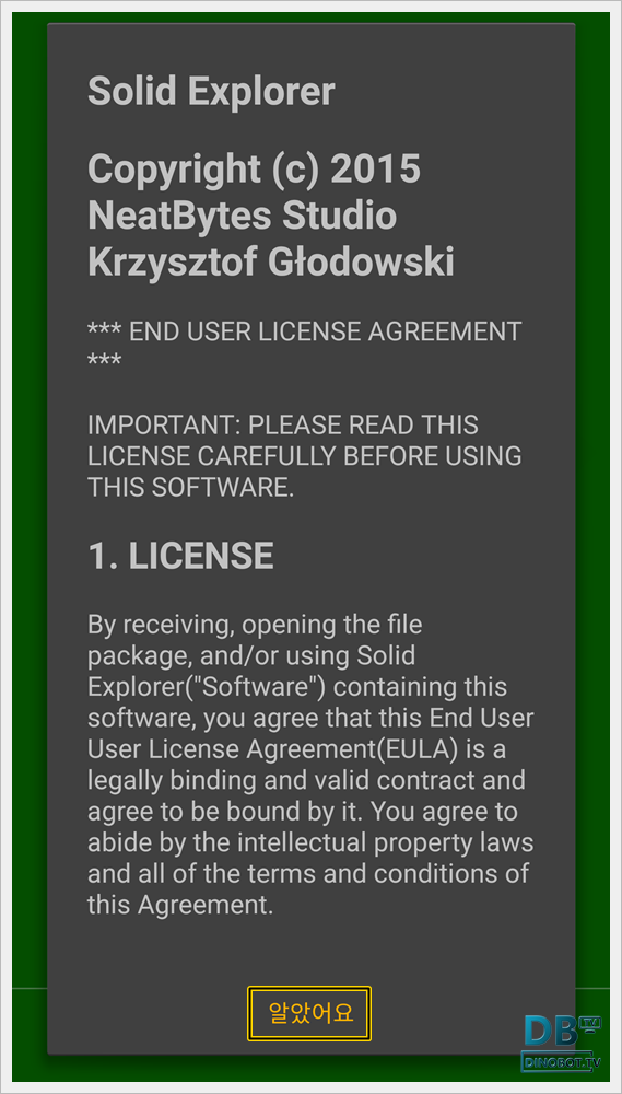 라이선스 내용이 뜨면 [ 알았어요 ] 를 눌러 주세요.