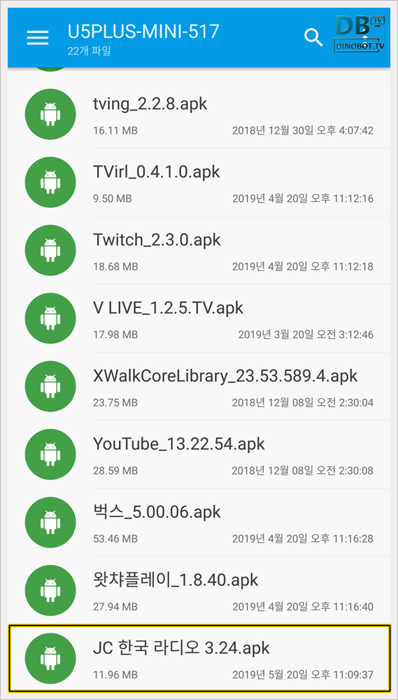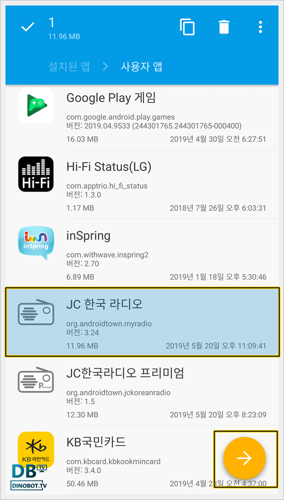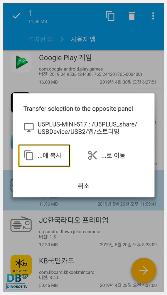 복사가 완료 되면 우측 탭 하단에 백업된 [ 제목 + 버전.apk ] 파일이 표시 됩니다.