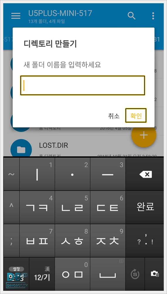 적절한 폴더명을 입력하고 [ 확인 ] 을 눌러 주세요.