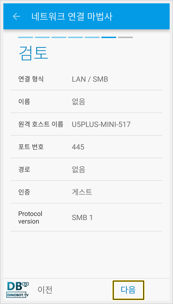 [ 끝 ] 을 누르면 U5 SMB 서버 연결이 완료 됩니다.