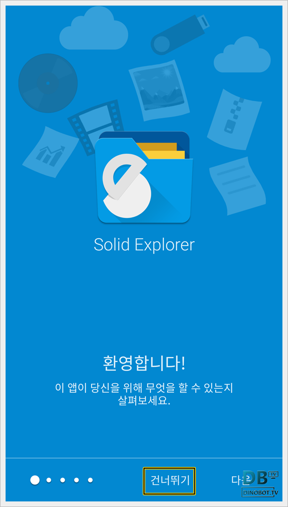 솔리드 파일 탐색기 앱을 실행 하면 간략한 사용 방법이 표시 됩니다.