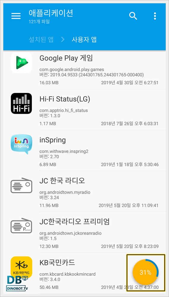 [ 사용자 앱 ] 을 눌러서 들어오면 사용자가 설치한 앱의 목록들이 나옵니다.
