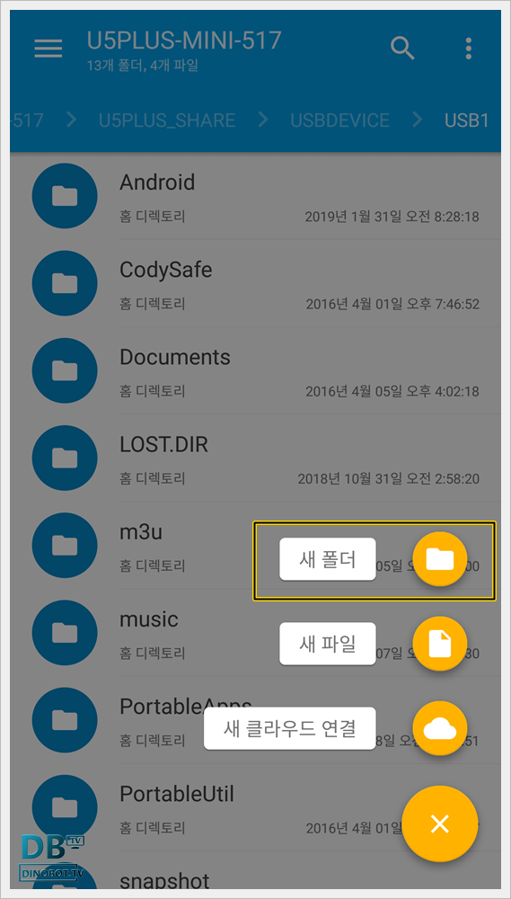 # 다이노봇 ATV7 사용자 매뉴얼 17부:하이파일 매니저 사용법
