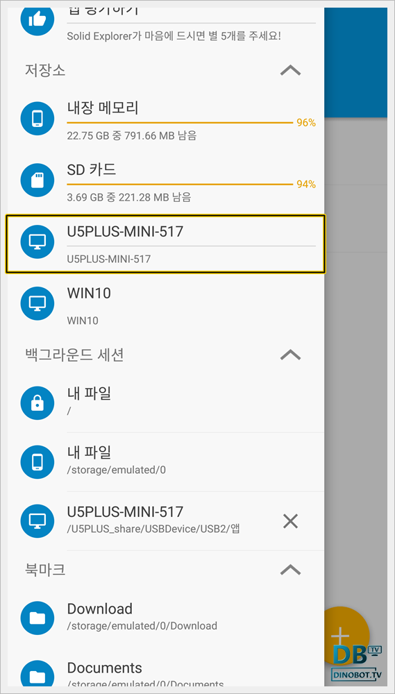 U5는 외부의 기기에서 SMB(이하 삼바) 서버로 연결해서 U5 내부에 연결된 내부 저장소나 USB 저장소에 연결을 할 수가 있습니다.