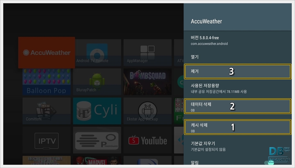 참고 앱의 삭제는 [ 캐시 삭제 - 데이터 삭제 - 제거 ] 순서대로 진행하시기 바랍니다.