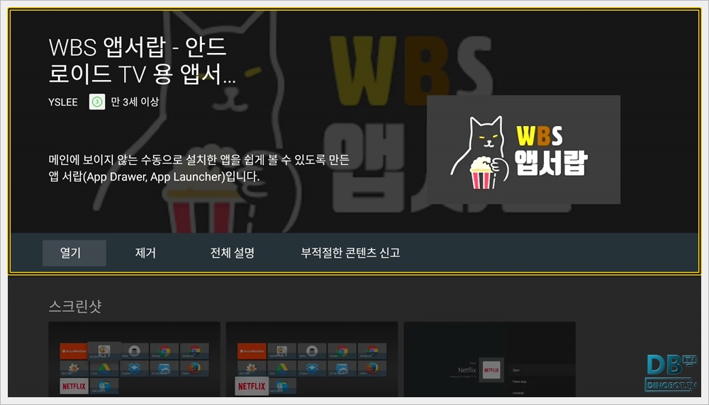 셋톱에 기본으로 탑재된 앱 매니저 입니다.