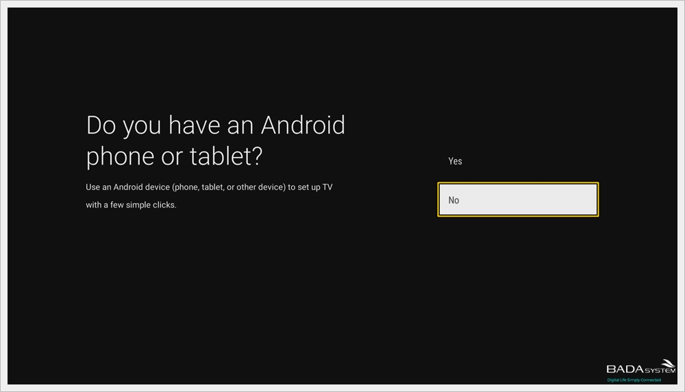 When you see the " Do you have an Android phone or tablet? " Message, press [No].
