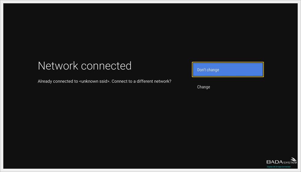 When the "Network connected" message appears, press "Do not change".