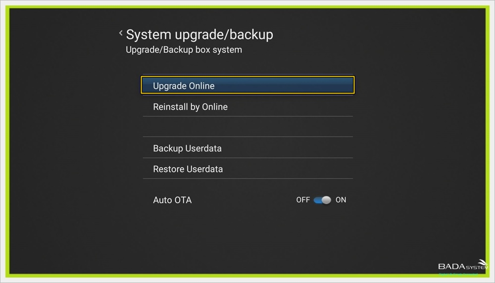 When the "System upgrade / backup" screen appears, you can update it.