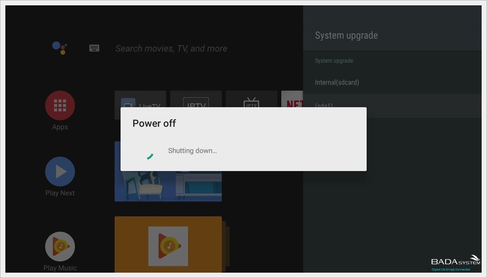 When the power adapter is connected and you press the "OK" button on the remote controller 10 times as soon as you boot up, it will update automatically and it will turn on automatically when the update is completed.