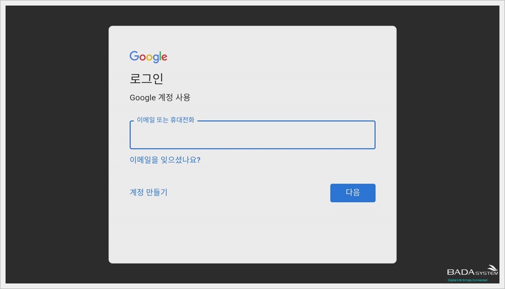 구글 아이디가 없으신 분들은 PC나 스마트 기기를 이용해서 구글 아이디를 생성 후에 아래 방법대로 초기설정을 진행하시면 됩니다.
