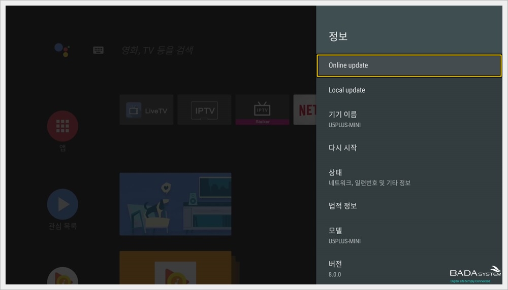 바다정보시스템 셋톱 ATV8 사용자 매뉴얼은 바다정보시스템에서 AOSP(Android Open Source Project) 기반으로 개발된 ATV8 버전 펌웨어가 올라간 셋톱박스 제품을 사용하는 유저들을 위한 매뉴얼입니다.