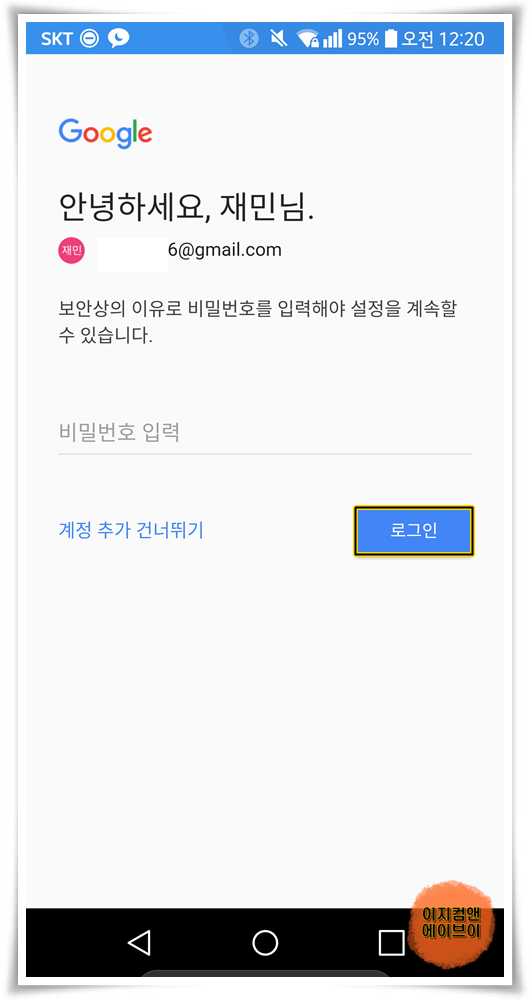 ' 아니오 ' 를 누르시면 구글 아이디+비번 로그인 방식으로 로그인 합니다.
