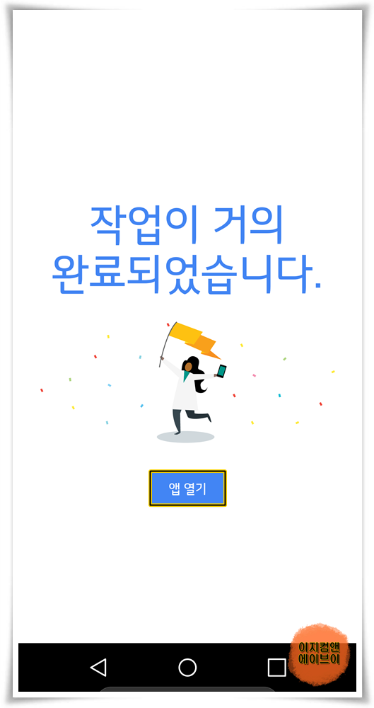 ' 작업이 거의 완료되었습니다. ' 메시지가 나오면 ' 앱 열기 ' 를 눌러 주세요.