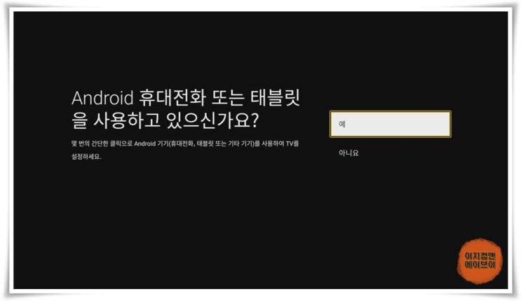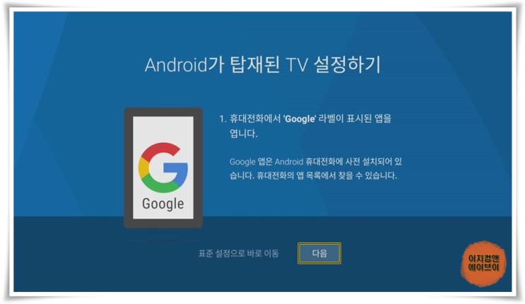 ' 안드로이드가 탑재된 TV 설정하기 ' 메시지가 나오면 ' 다음 ' 을 눌러 주세요.