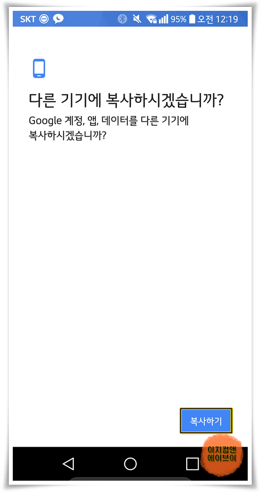 ' 다른 기기에 복사 하시겠습니까? ' 메시지가 나오면 ' 복사하기 ' 를 눌러 주세요.