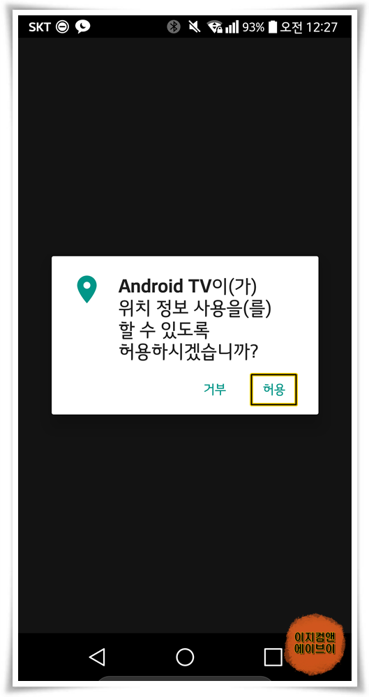 ' 안드로이드 TV이(가) 위치 정보 사용을(를) 할 수 있도록 허용하시겠습니까? ' 메시지가 나오면 ' 허용 ' 을 눌러 주세요.