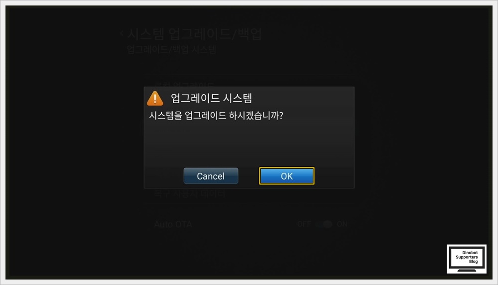 ' 업그레이드 시스템 ' 메시지가 뜨면 ' OK ' 를 눌러 주세요.