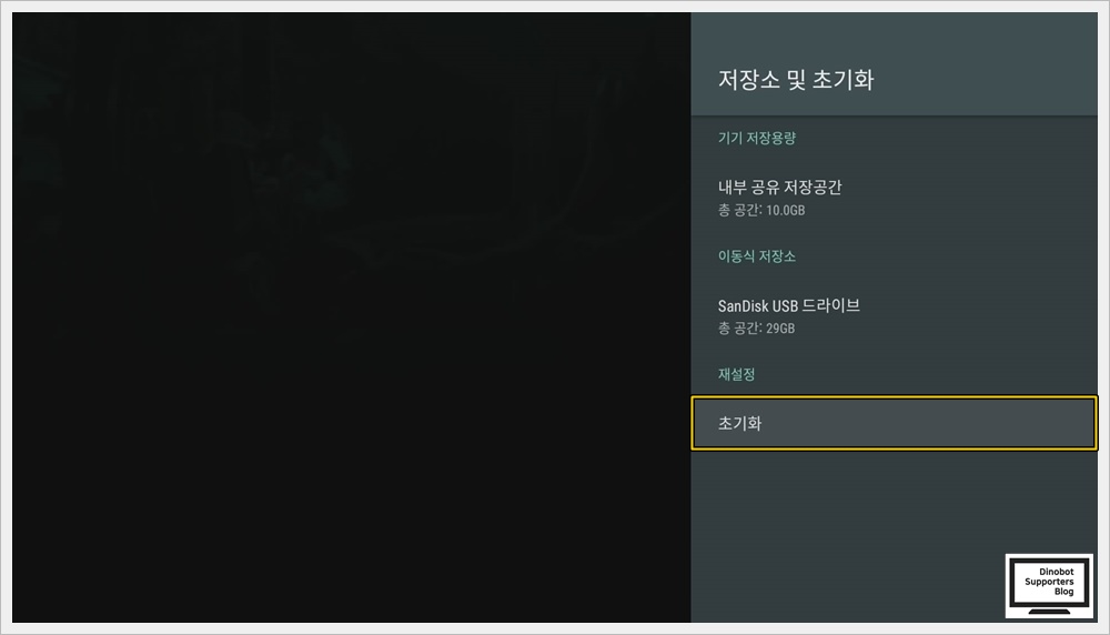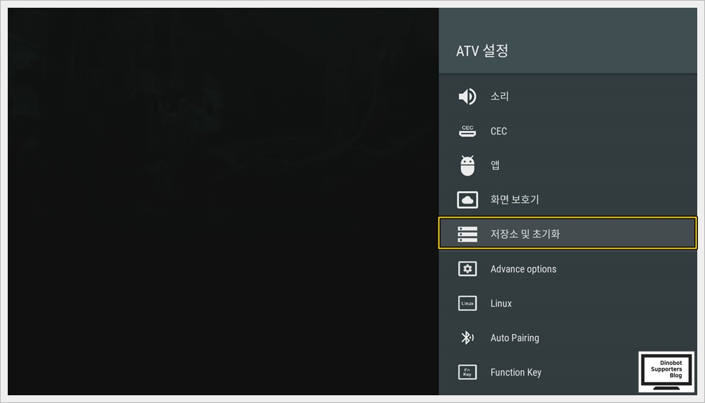 ' ATV 설정 - 기기 - 저장소 및 초기화 ' 순서대로 진입해 주세요.