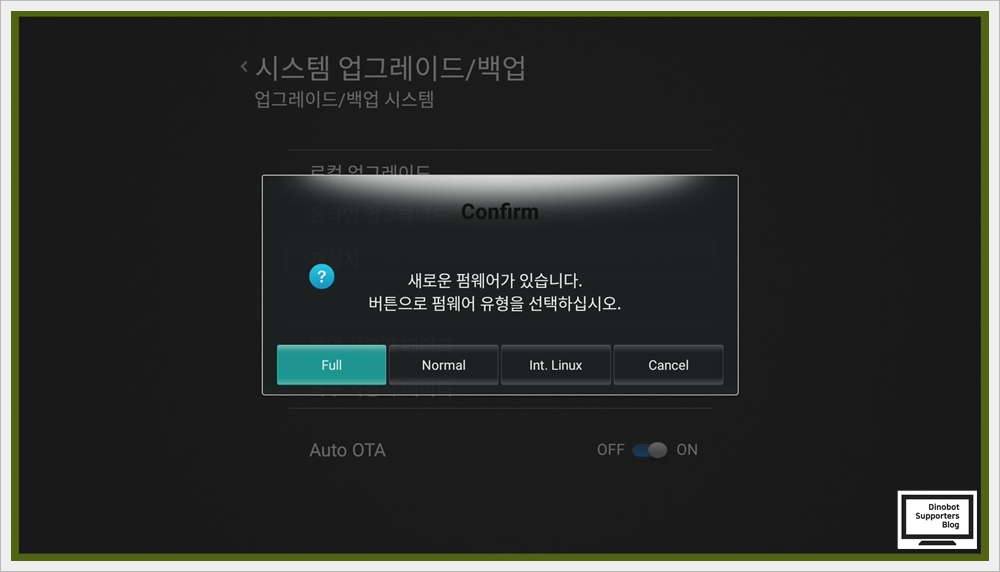 펌웨어 업그레이드 유형은 ' Full / Normal/Int. Linux ' 세 가지 유형이 있습니다.