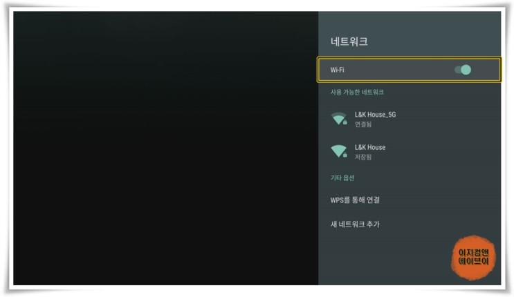 ' 새 네트워크 추가 ' 를 눌러서 와이파이 목록에 안 보이는 숨겨져 있는 나만의 와이파이 연결도 가능 합니다.