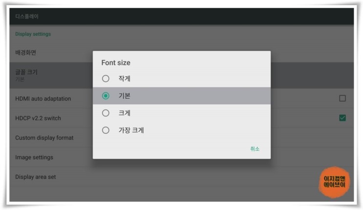 ' 글꼴 크기 ' 항목을 통해서 설정 메뉴의 글자를 작게 하거나 크게 할 수 있습니다.