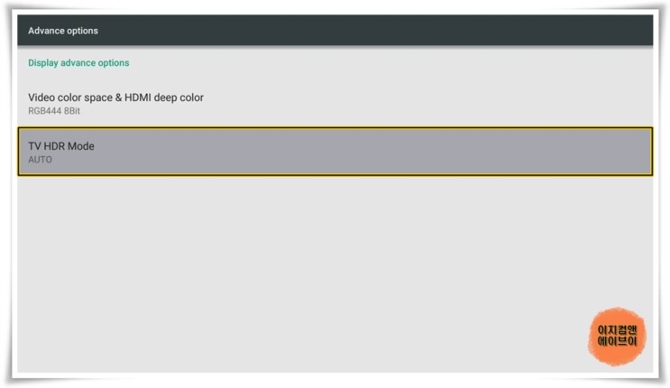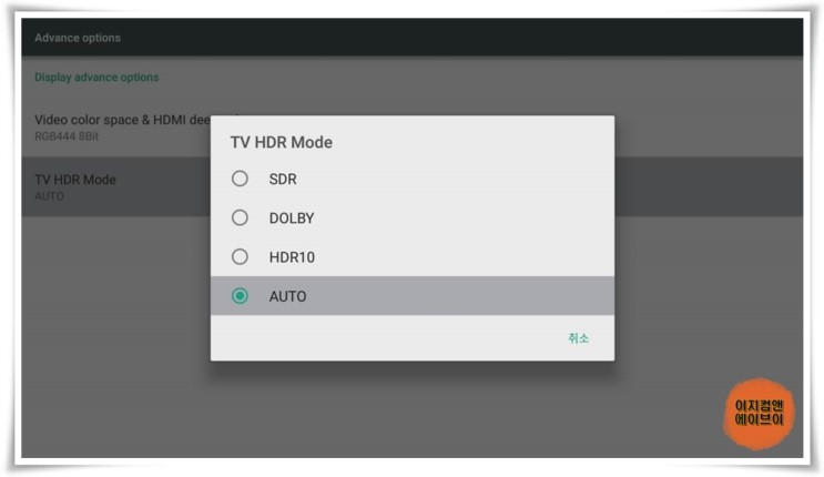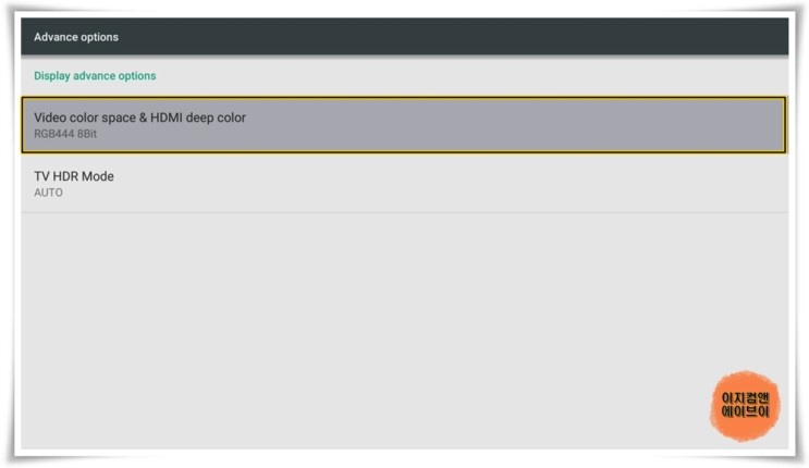 ' Advance options ' 항목을 통해서 비디오 컬러 설정과 HDR 설정이 가능 합니다.