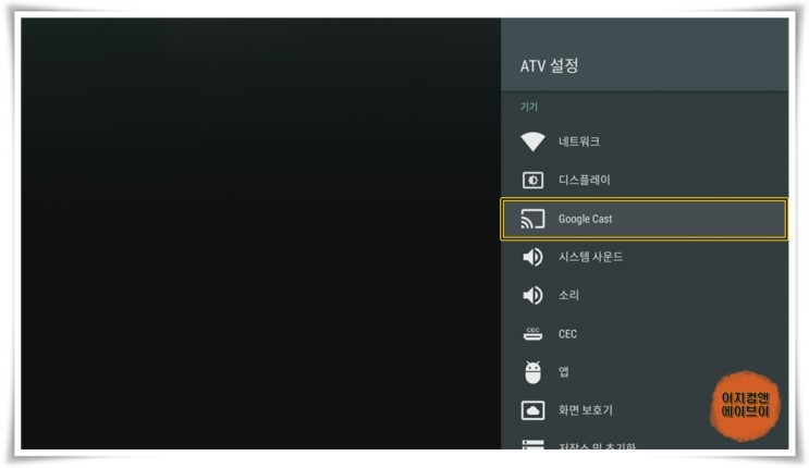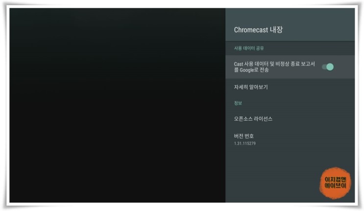 ' Google Cast ' 항목을 통해서 크롬캐스트 설정이 가능 합니다.