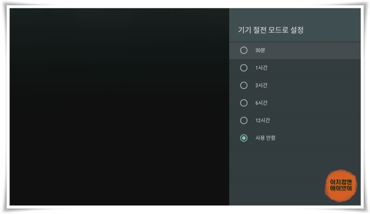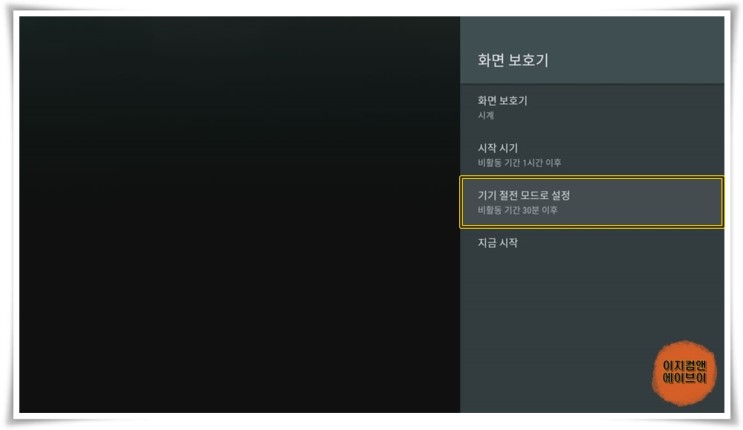 ' 기기 절전 모드로 설정 ' 항목을 통해서 절전 모드 설정이 가능 합니다.