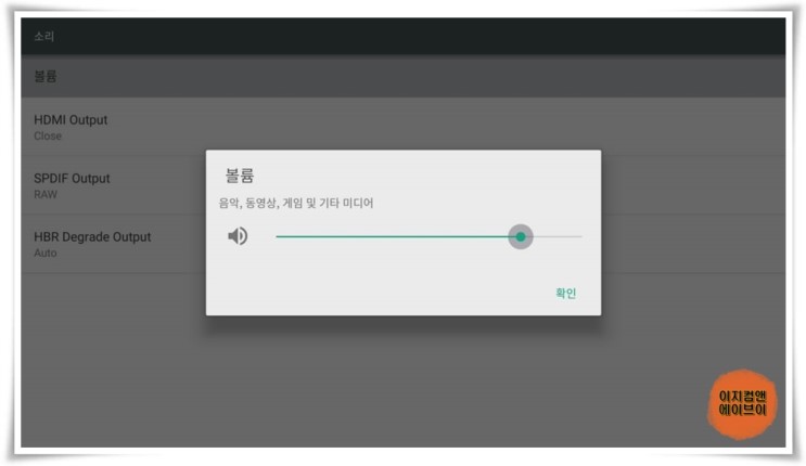' 볼륨 ' 항목을 통해서 출력되는 소리의 크기를 조절 할 수가 있습니다.