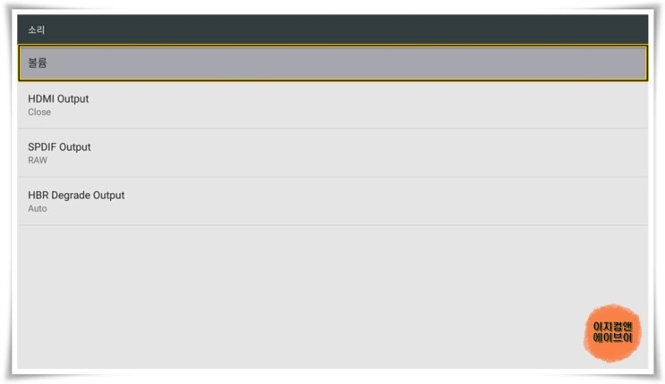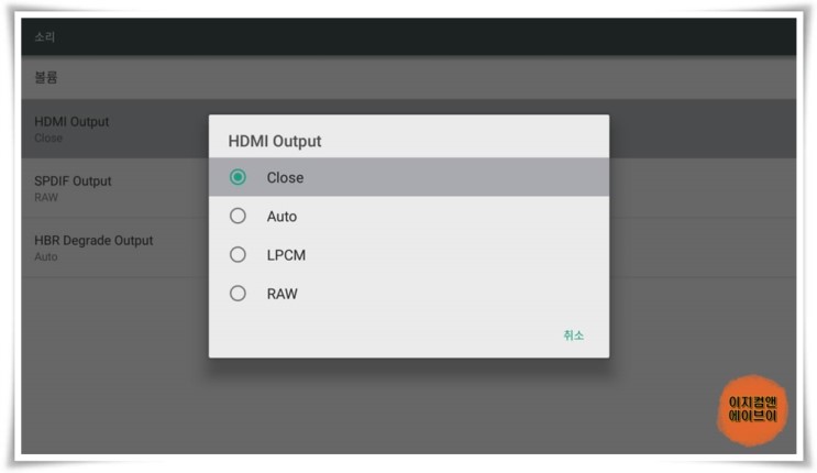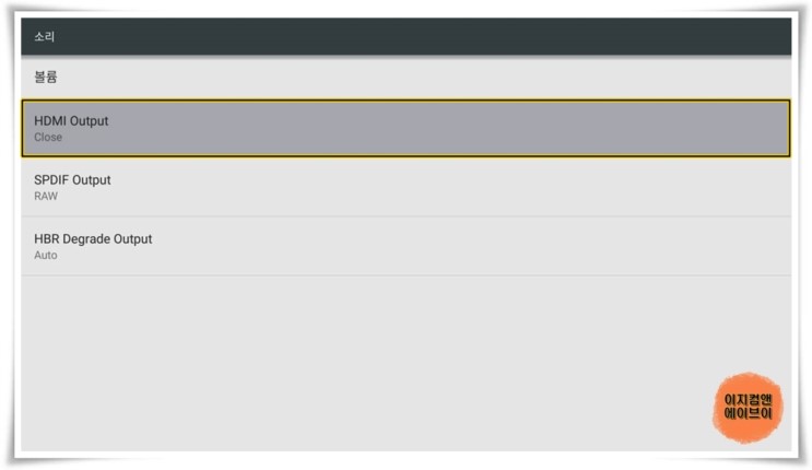 HDMI 케이블 TV와 단독 연결 시 ' HDMI Output ' 항목을 통해서 출력되는 오디오 옵션을 설정 가능 합니다.