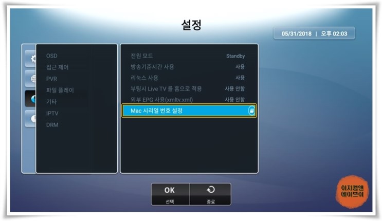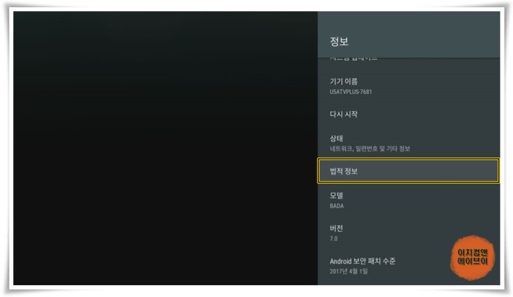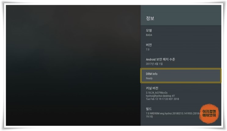 재부팅이 완료 되면 ' ATV 설정 - 정보 ' 항목으로 들어가서 DRM 상태가 ' Ready ' 로 변경 됩니다.