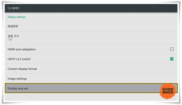 ' Display area set ' 항목을 통해서 화면 보정이 가능 합니다.