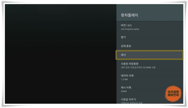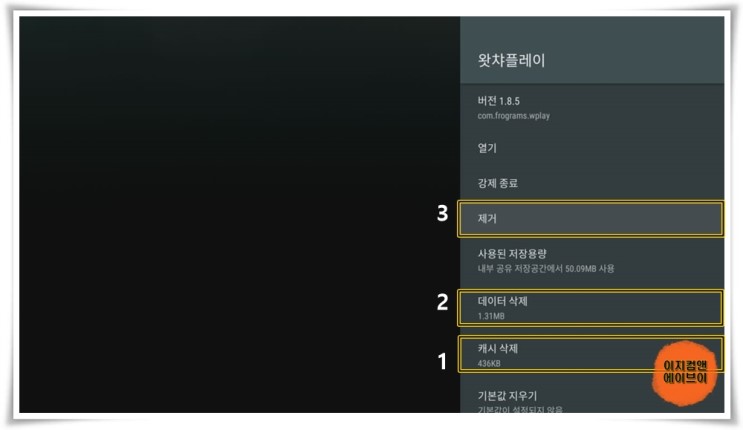 이런 경우를 막기 위해서 앱의 삭제 시에는 ' 캐시 삭제 - 데이터 삭제 - 제거 ' 순으로 해주면 깨끗하게 앱을 삭제 할 수가 있습니다.
