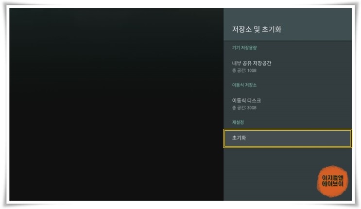 ' 저장소 및 초기화 ' 항목으로 들어가면 저장소의 사용 공간 확인과 U5를 기본 설정 상태로 초기화 시킬 수가 있습니다.