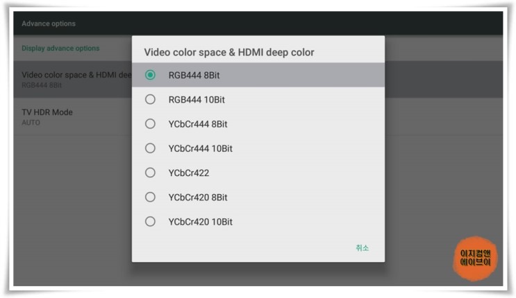 ' Video color space & HDMI deep color ' 항목을 통해서 비디오 색 공간 설정이 가능 합니다.