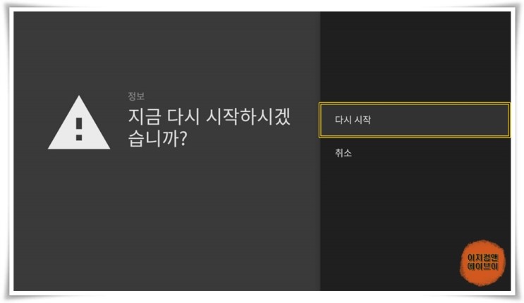 ' 지금 다시 시작하시겠습니까? ' 메시지가 뜨고 ' 다시 시작 ' 을 누르면