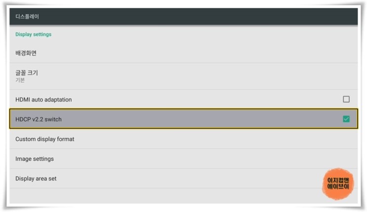 4K HDR 영상 재생을 위해서는 ' HDCP v2.2 switch ' 를 사용으로 해주셔야 합니다.