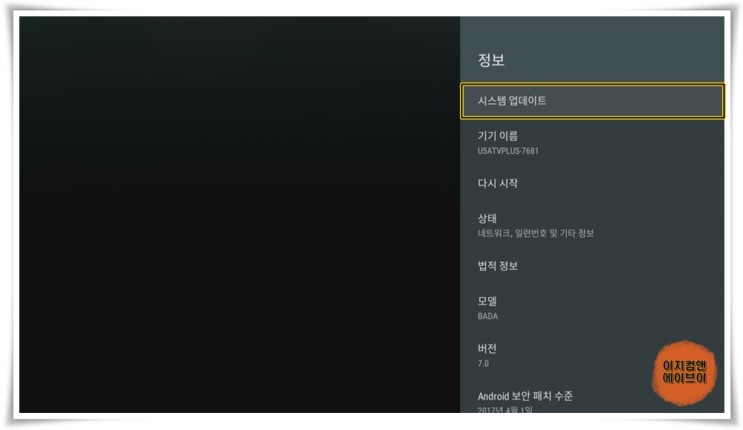 ' 시스템 업데이트 ' 항목을 통해서 시스템 업데이트가 가능 합니다.