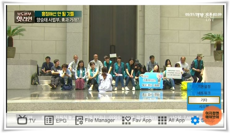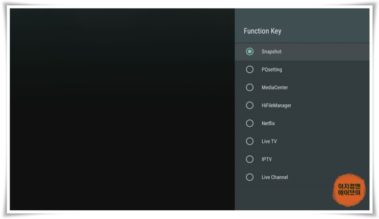 라이브 티비 앱이 실행되면 리모컨에 메뉴키를 눌러주세요.