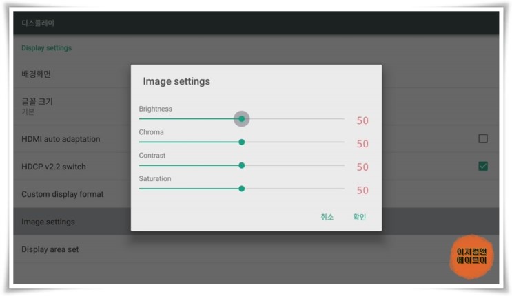 ' Image settings ' 항목을 통해서 색감의 설정이 가능 합니다.
