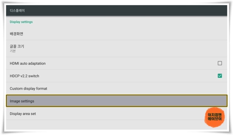 ' 디스플레이 ' 항목을 통해서 출력되는 영상의 설정이 가능 합니다.