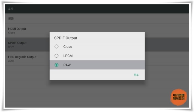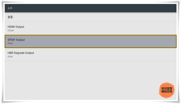 SPDIF 케이블 연결 시 ' SPDIF Output ' 항목을 통해서 출력되는 오디오 옵션을 설정 가능 합니다.